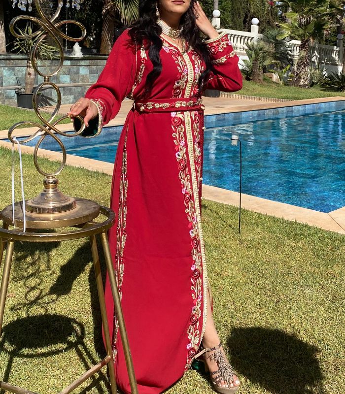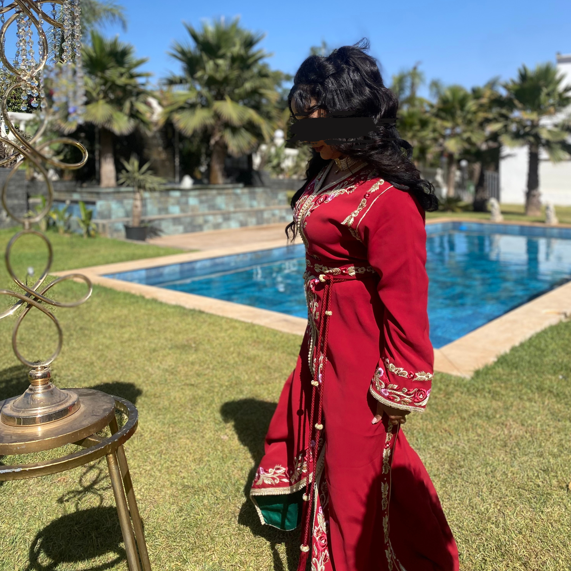 Ce caftan rouge éclatant est une véritable ode à l'élégance et à la tradition. Les broderies à la main, minutieusement exécutées. Réalisées avec un fil de soie fine, ces broderies apportent une touche de texture et de luxe, tout en mettant en valeur la beauté du rouge. À l’intérieur, une doublure en vert vif crée un contraste saisissant avec la couleur rouge, ajoutant une profondeur et une richesse supplémentaires au vêtement. Ce jeu de couleurs apportant une touche inattendue et originale, tout en apportant confort et fluidité.